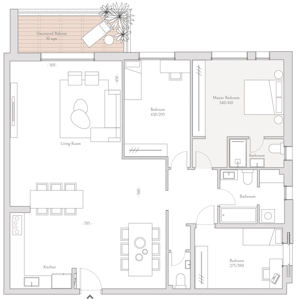 3 bedrooms | Master suite with bathroom | Family bathroom | Guest bathroom | Parking and storage at the underground level | Facing directions: Northwest and Northeast