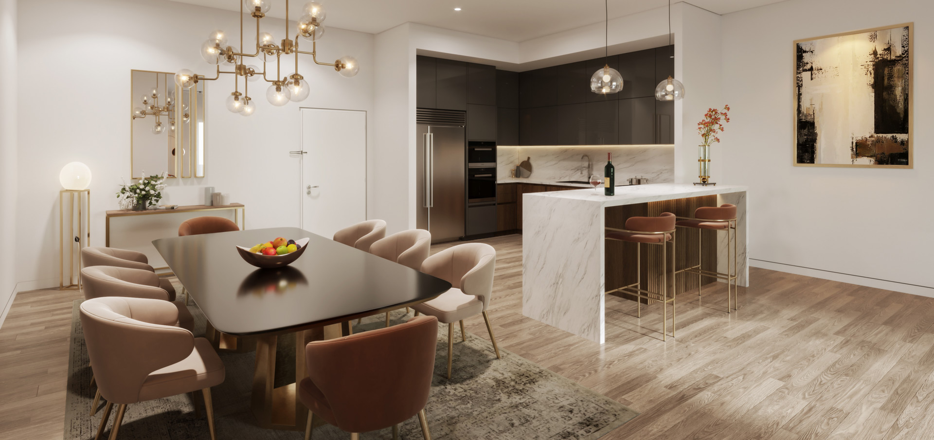 An extra-large 4-room apartment with over 143 sq. meters of living space and a 10 sq. meter sukkah balcony overlooking the project courtyard.